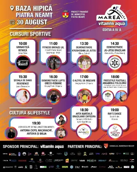 Marea Mişcare vă invită în perioada 29-31 august la Baza Hipică „Colonel Virgil Bărbuceanu” din municipiul Piatra-Neamţ, la cea de-a IV-a ediţie.