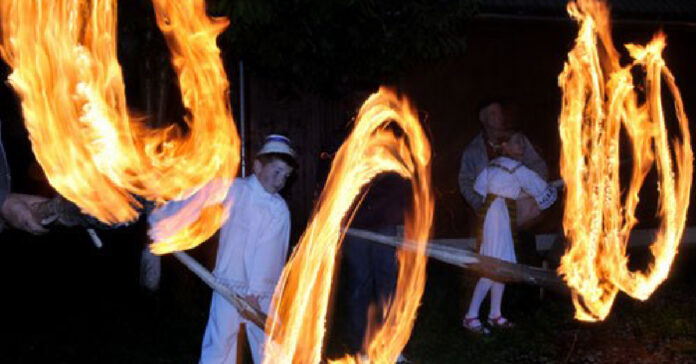 «Făclia, măăă!…» Făclia era trecută printre picioare, lăsând impresia că feciorii sar peste foc sau călăresc un cal de foc. Când făcliile erau pe cale să se stingă, feciorii coboarau în sat şi împlântau făcliile în mijlocul livezilor.