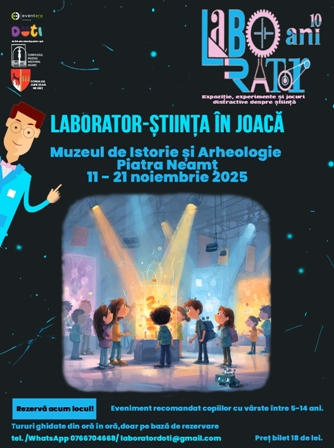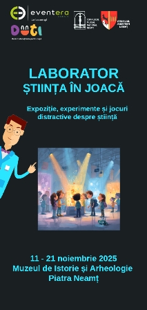 Eventera și Complexul Muzeal Național Neamț invită copiii în „Laboratorul” organizat în perioada 11 – 21 noiembrie 2025 în cadrul Muzeului de Istorie și Arheologie Piatra Neamț. Evenimentul reprezintă o experiență captivantă și interactivă ce îmbină exponate, experimente și jocuri distractive despre știință și este adresată copiilor cu vârste între 5 și 14 ani, însoțiți de cadre didactice sau de părinți.