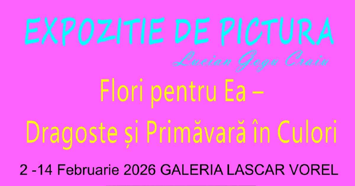 Expoziție Lucian Gogu Craiu: Galeriile de Artă „Lascăr Vorel” din Piatra Neamț vă invită în perioada2-14 februarie să vizitați expoziția semnată de artistul local Lucian Gogu Craiu intitulată „Flori pentru Ea-Dragoste și Primăvară în culori” care cuprinde un număr de 83 de lucrări în mai multe tehnici de lucru.
