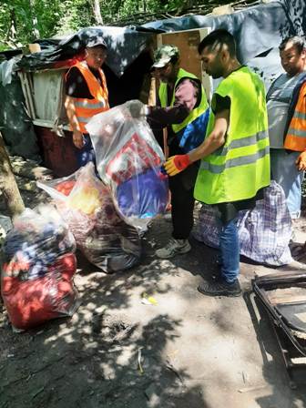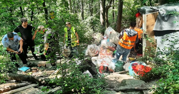 O adevărată cazemată, aparținând unei persoane fără adăpost, a fost desființată, cu sprijinul lucrătorilor Publiserv, joi, 19 iunie 2025.