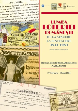 Complexul Muzeal Național Neamț și Muzeul Național de Istorie României anunță organizarea expoziției „Lumea loteriei românești: de la afacere la binefacere (1837-1989)” la Muzeul de Istorie și Arheologie Piatra-Neamț. Vernisajul va avea loc joi, 19 februarie 2026, ora 13.00.