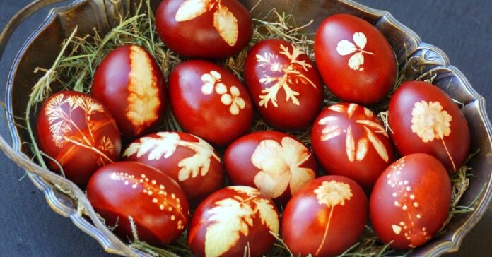 La început, ouăle se vopseau, cu ajutorul plantelor, în galben – culoarea Soarelui – și în roșu – culoarea astrului solar la răsărit și la apus. Ulterior, ouăle au fost decorate cu chipul lui Iisus, cu figuri de îngeri și cu diferite motive astrale, fitomorfe și zoomorfe.