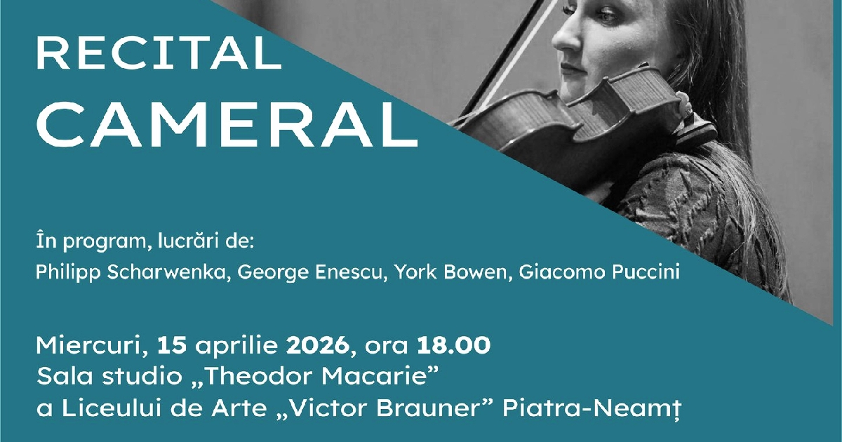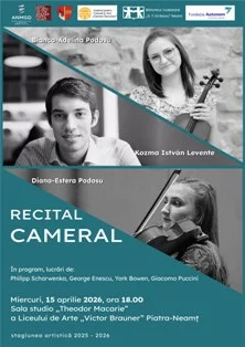 Academia Națională de Muzică „Gheorghe Dima” Cluj-Napoca, Extensia Piatra-Neamț, în parteneriat cu Centrul pentru Cultură și Arte „Carmen Saeculare” Neamț, Liceul de Arte „Victor Brauner”, Biblioteca Județeană „G. T. Kirileanu” Neamț și Autonom Piatra-Neamț, invită publicul meloman la Recitalul cameral susținut de Bianca Adelina Podosu (vioară), Diana Estera Podosu (violă) și Kozma István Levente (pian).