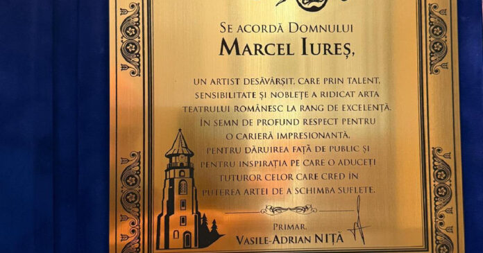 În semn de apreciere pentru cariera sa remarcabilă și contribuția sa inestimabilă la cultura românească, Marcel Iureș a primit o diplomă de recunoștință. Momentul a fost încărcat de emoție, respectul și admirația culminând cu aplauze sincere și prelungite. “Prezența domniei sale aici, în orașul în care teatrul are rădăcini adânci și o istorie plină de lumină, a adus emoție, rafinament și acea energie specială care ne amintește de ce iubim arta.